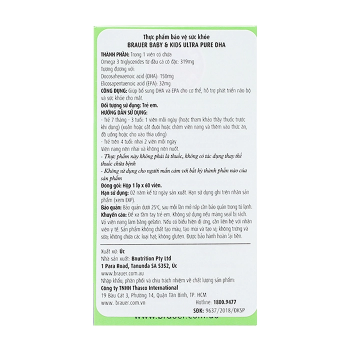 • Brauer Baby Kids Ultra Pure DHA 60 viên