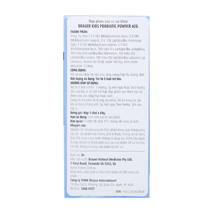Brauer Kids Probiotic Powder 60g – Bổ sung men vi sinh cho trẻ