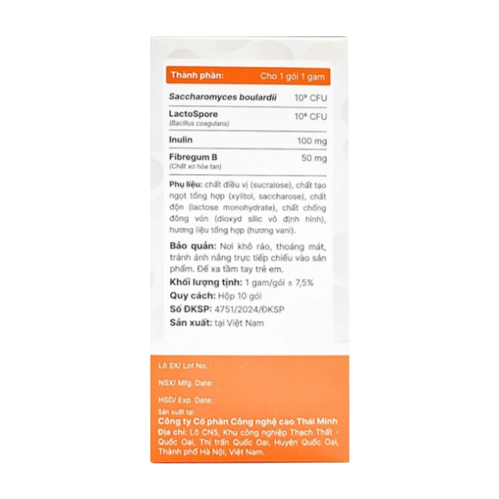 Phụ liệu: chất điều vị (sucralose), chất tạo ngọt tổng hợp (xylitol, saccharose), chất độn (lactose monohydrate), chất chống đông vón (dioxyd silic vô định hình), hương liệu tổng hợp (hương vani).