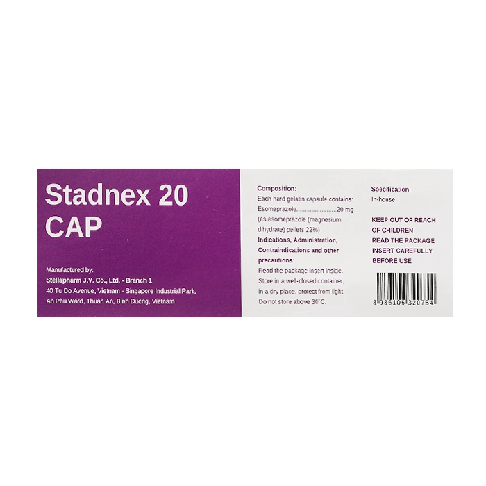 Stadnex 20 CAP Stellapharm 4 vỉ x 7 viên – Điều trị trào ngược dạ dày, tá tràng