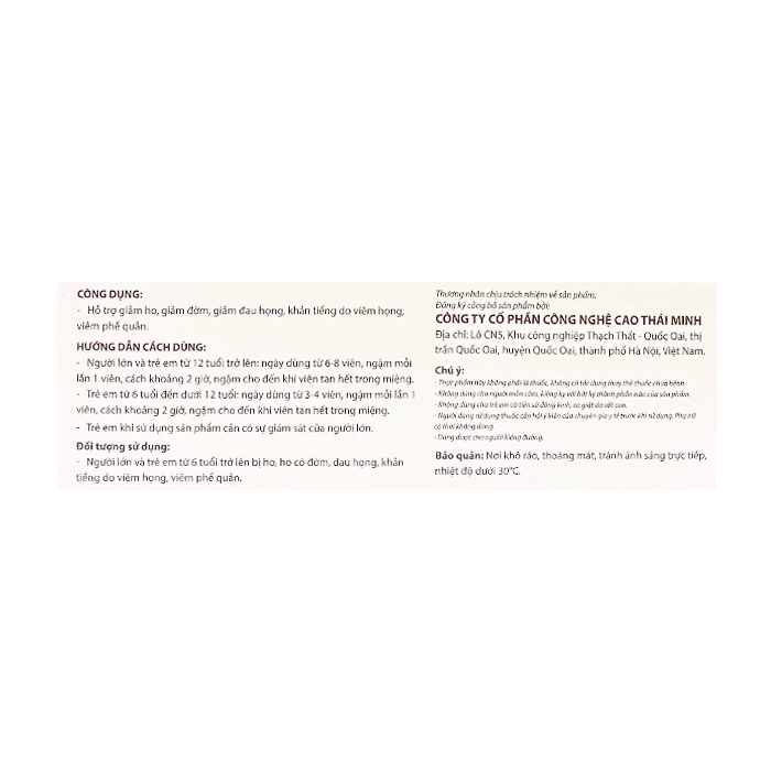 | Tinh dầu Bạc hà(Aetheroleum Menthae arvensis) | 0,06 mg |