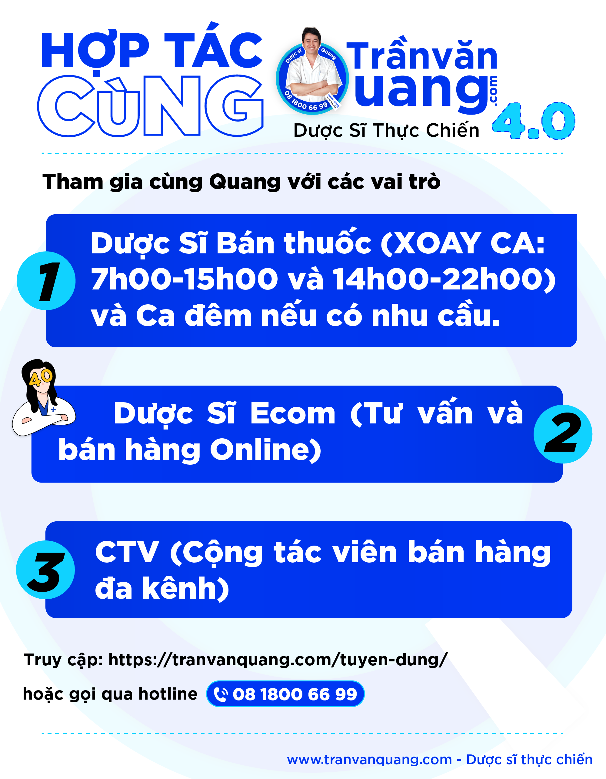 Niềm Đam Mê dược phẩm đã gần 20 năm. Với những kinh nghiệm và thực chiến thương trường Quang tin sẽ chia sẽ nhiều kiến thức và sản phẩm tốt đến cho các đồng nghiệp và khách hàng.